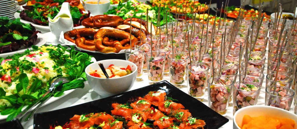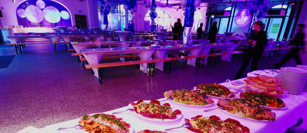 400 Personen Feinbeisser Event & Catering Hamburg ist wieder dabei. Schwäbisches Finger- & Gabelfoodbuffet warm & kalt, mobile Küche, Personal, Geschirr, Gläser, Barservice.