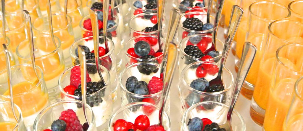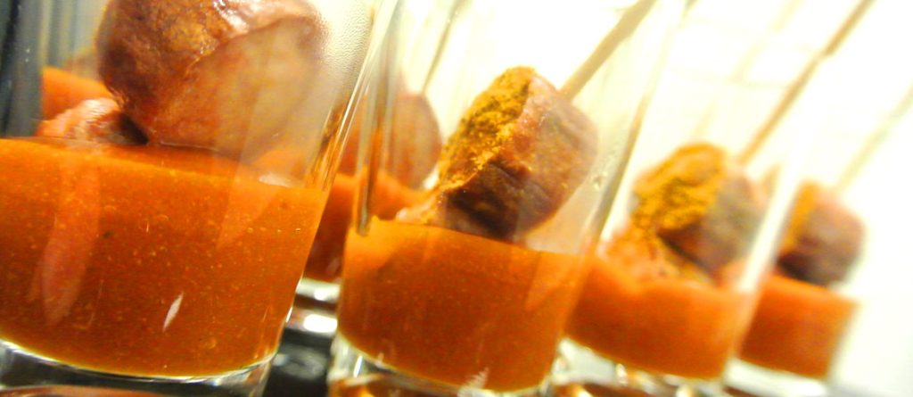 100 Personen Gemeinsame Vorplanung. Flying Fingerfood warm & kalt, Currywurst im Miniglas, Wiener Schnitzel am Spieß, Mini-Baked Potatoe, Barservice und Personal.
